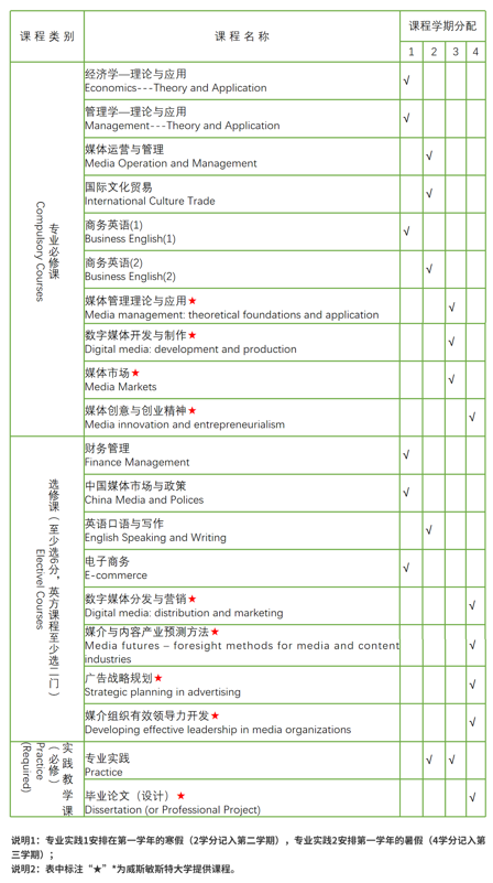 本项目学制为2年,属学分制项目,学生必须修满49学分。其中理论教学31学分,毕业论文或毕业设计12学分,专业实践6学分。专业课授课语言主要为英文,由英方教师和中方教师共同任教。